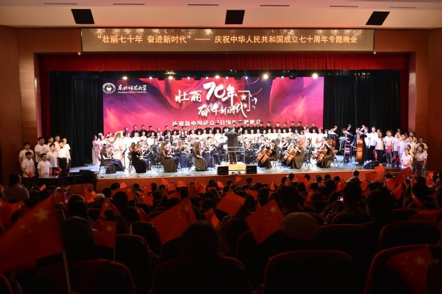 爱国教育,弘扬红色文化,筑牢精神高地。党委宣传部、校工会等基层党组织联合组织老中青教师和学生同台举办“壮丽七十年,奋进新时代”——庆祝新中国成立70周年专题晚会,党委学生工作部党支部通过“小我融入大我,青春献给祖国”师生主题社会实践汇报会、“我和国旗同框”“青春告白祖国告白亭”等活动,激发师生与祖国共奋进的爱国情、报国志,滋养师生坚守强师报国的初心,引领师生勇担服务国家发展的使命。文学院、政法学院、经济与管理学院等基层党组织举办了主题征文大赛、辩论赛、校园歌曲快闪活动,让爱国主义精神滋润校园,让爱国主义情感深入内心。政府采购与招标管理中心、学生资助管理中心、生命科学学院等基层党组织组织党员同志开展观影活动。《决胜时刻》《我和我的祖国》《我们走在大路上》等一部部影片见证了中华民族的崛起和伟大复兴,激发师生党员的爱国热情,凝聚奋进新时代的磅礴力量。心理学院、图书馆、文学院等基层党组织联合举办了“翰墨国禧——庆祝新中国成立70周年”书画作品展,展现学校与祖国同频共振,争创一流的光辉历程和辉煌成就。